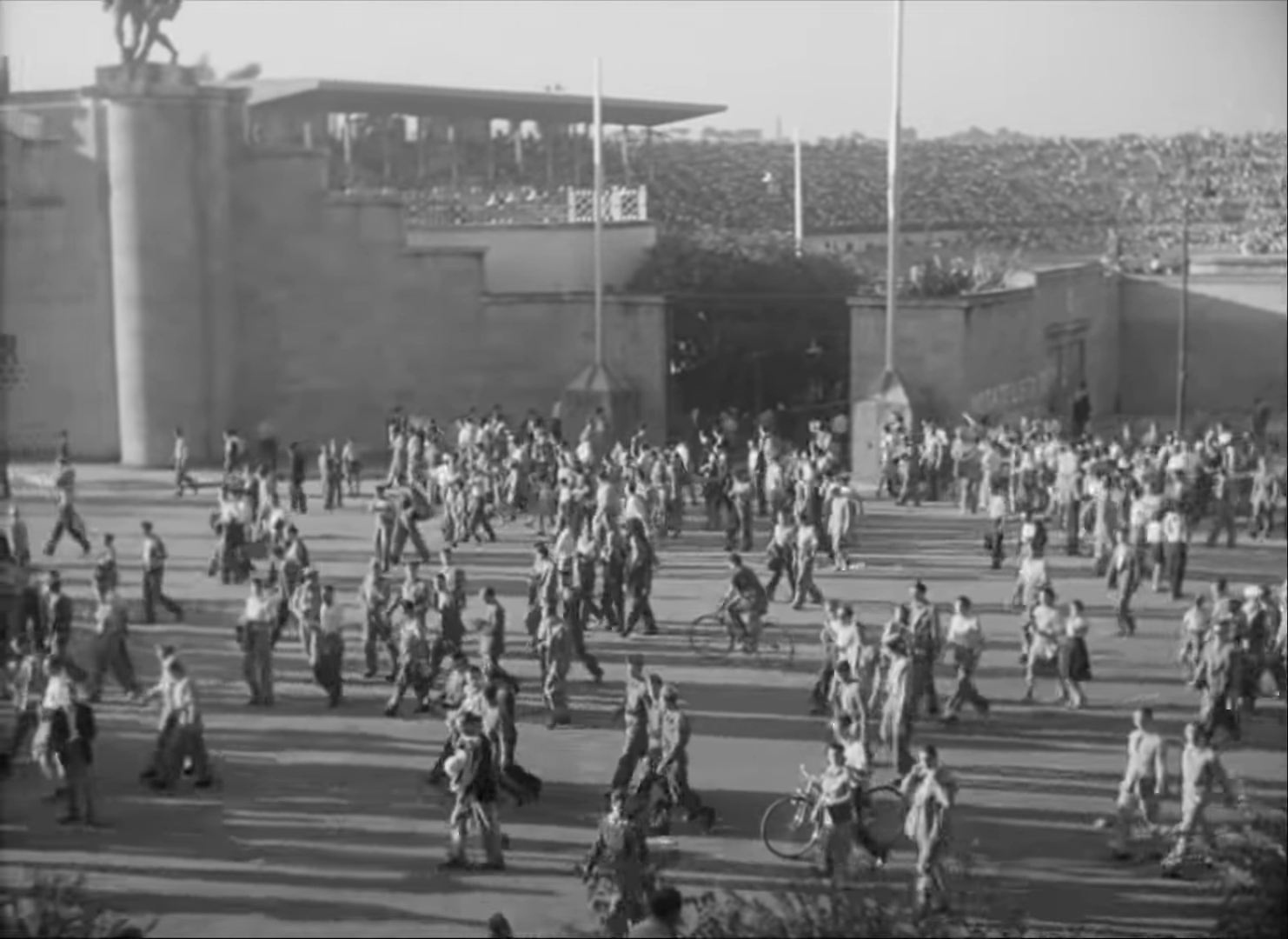 Crowds of football fans at the end of Bicycle Thieves, 1945.