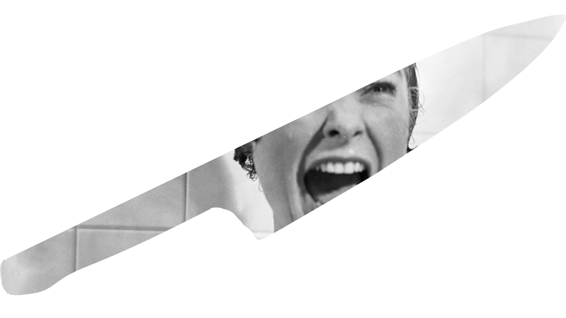Pscyho (Hitchcock, 1960) frame inside over a knife, Paramount Pictures.