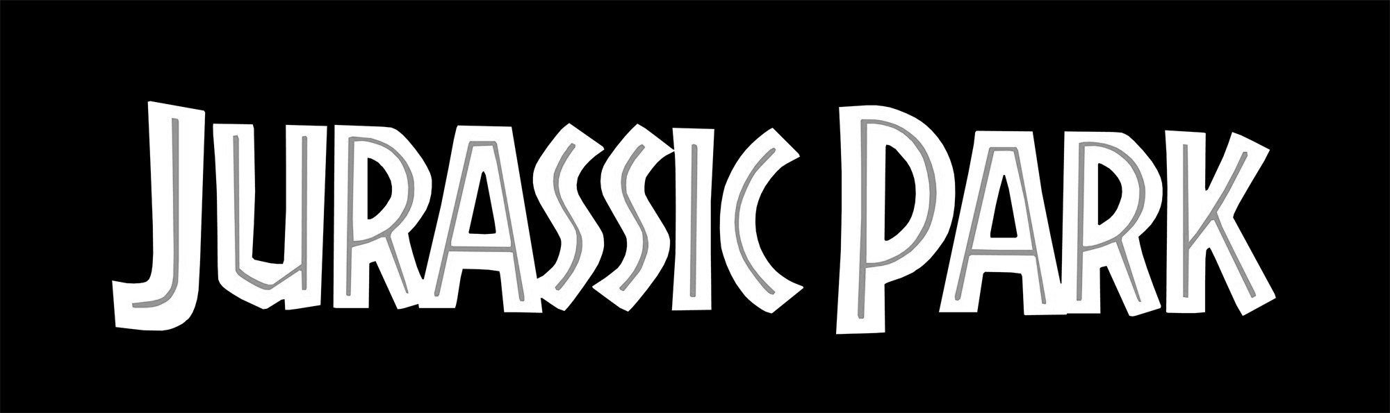 Recognisability is a key trait for a good title typeface, with the text of the Jurassic Park logo becoming a cultural icon in its own right due to constant repetition on t-shirts, hats, posters, and any other merchandise possible (an outcome which is even predicted in the first film through a scene depicting the colossal giftshop of the park)